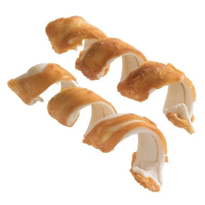 Espirales masticables para perros; de sabrosa piel de vacuno secada al aire y deliciosos filetes de pollo o de pato. No contienen colorantes ni conservantes. ¡Ahorra con el pack %!