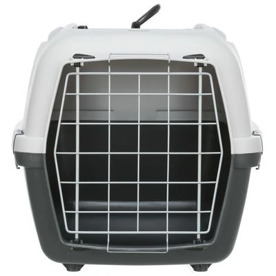 Trasportín para gatos o perros pequeños de máximo 12 kg. Con una puerta lateral y una superior de metal. Práctico para visitar al veterinario.